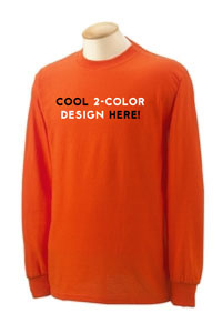 2-color/1 location design on 50 Gildan G2400 standard longsleeve shirts, over $80 below standard pricing!